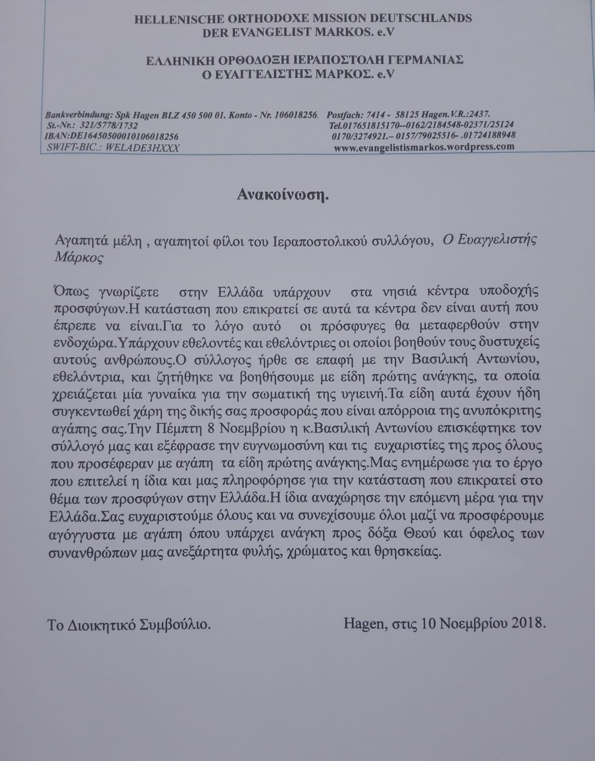 Η ευαισθητοποίηση του συλλόγου πρoς τις γυναίκες που είναι στα κέντρα υποδοχής προσφύγων στην Ελλάδα.
